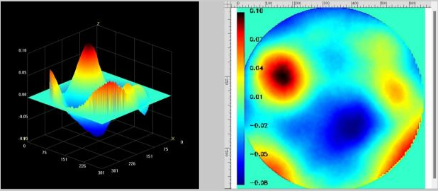 Fig.2. चार-वेव लेटरल शीयरिंग इंटरफेरोग्राम से स्क्वायर वेवफ्रंट पुनर्निर्माण